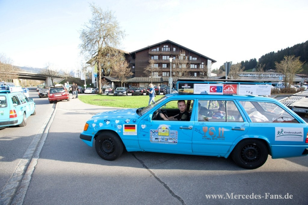 Das Mercedes-Benz Gebrauchtteile Center auf 6000 km Rallye - Rüstig statt rostig: Betagte E-Klassen nehmen an der urigen "Rallye Allgäu Orient" teil Über 6.000km bei der "Allgäu-Orient-Rallye" mit 20 Jahre alten Mercedes - deren Wert unter 1.000 EUR lieg