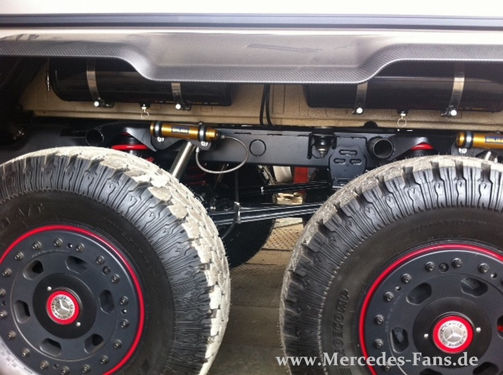 Die Spatzen pfiffen es schon von den Dächern. Auf der Abu Dhabi International Motor Show (ADIMS) 2012 soll ein ganz spezieller Mercedes-Benz AMG G63 zu sehen sein. Wie speziell genau, wußte aber niemand so genau. Dass es vielleicht ein 6x6 werden könnte, lag nicht völlig im Reich der Fantasie. Denn was sollte einen gewöhnlichen G63 AMG sonst toppen können. Für die Falkenjagd ist ein normaler G63 am Ende dann doch eine Spur zu gewöhnlich. Mercedes-Fans.de ist in Namibia auf einen ganz besonderen G63 AMG gestoßen von dem wir uns sehr gut vorrstellen können, dass er in Abu Dhabi steht.