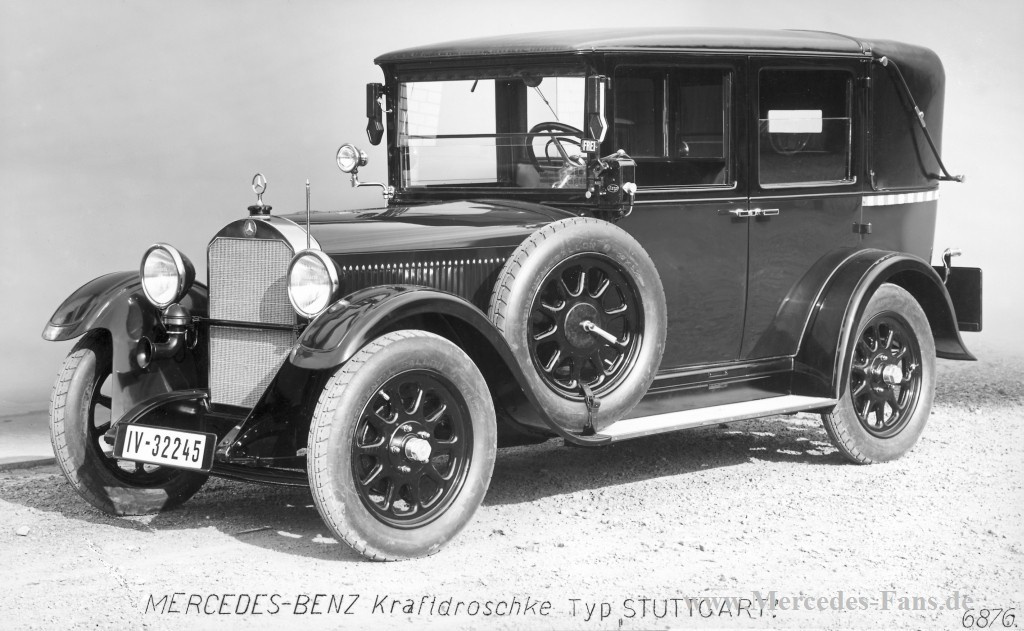 Zehn Jahre nach der Erfindung des Automobils beschließt Daimler, seiner inzwischen recht erfolgreich laufenden Motorkutschen-Herstellung ein breiteres Einsatzgebiet zu geben und empfiehlt seinen Riemenwagen, Modell „N“, als Kraft-Droschke altdeutsch für Taxi.