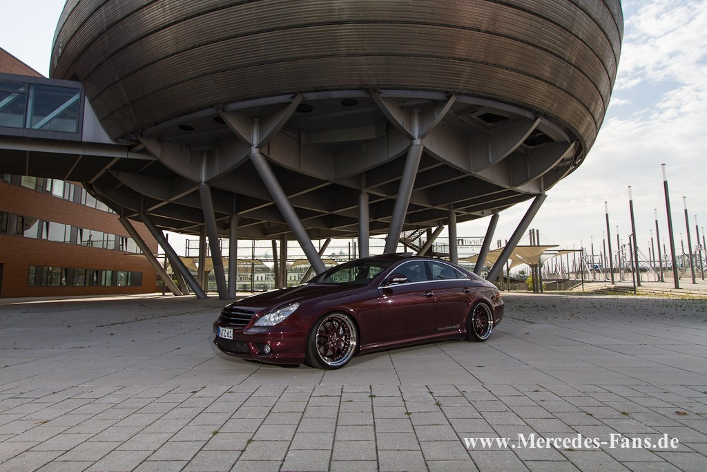 Was Mercedes mit dem CLS auf die Beine, pardon, Räder gestellt hat, ist wie eine Skulptur auf Rädern. Prototypen sehen am Anfang immer sehr stimmig aus, durchlaufen dann in der Regel verschiedene Phasen der Serienreife und werden auf dem Weg zum fertigen Fahrzeug derart weichgespült und massentauglich getrimmt, dass jeglicher Pep auf der Strecke bleibt. Die „Vision CLS“ jedoch fand derart großen Anklang auf der IAA im Jahr 2003, dass Mercedes alle Stadien des „Weichspülens“ übersprungen hat und einen absoluten Optikhammer auf die Straße gebracht hat. Dieser Mercedes hat nur einen einzigen, schönen Stern Nesat Özke, Autotuner und Mercedes-Fan aus Leidenschaft, fährt bevorzugt Modelle mit Stern auf der Haube. Umso interessanter, dass er bei seinem aktuellen Projekt alle Embleme verbannt und durch seine eigenen Firmenlogos ersetzt hat: „Der einzige Stern an diesem CLS sitzt auf dem Lenkrad!“ Vielleicht sollten wir beiläufig erwähnen dass das Lenkrad aus einem Black Series Modell stammt und mit gut eintausend Euro zu Buche schlägt? Doch das ist nicht die einzige Besonderheit an diesem CLS, der nun so total anders wirkt als das Serienmodell. Bereits im Originalzustand ist die Design-Ikone CLS ja kein Geländewagen, Nesats AMG-Modell duckt sich aber dank eines Tieferlegungsmoduls für die Airmatic so tief auf den Asphalt, dass man die Alltagstauglichkeit dieses Geschosses arg in Zweifel zieht. Dabei versichert der Eigentümer, den Wagen von April bis Oktober tagtäglich im Einsatz zu haben: „Ich fahre in den sieben Monaten knapp 10.000 Kilometer. Im Winter ist mir das Auto zu schade, da fahre ich C-Klasse oder unseren Familien-Beetle.“ Rechnet man das aufs Jahr hoch, würde sich bei der Fahrleistung glatt ein Diesel rechnen, oder? So flach, er könnte glatt einen Limbo tanzen Nesat winkt ab: „Ich habe mir den Wagen gekauft, weil ich schnell fahren will. Und ich finde, die AMG-Modelle sind etwas richtig besonderes. Noch dazu gefällt mir der CLS aufgrund seiner flachen Form am besten von allen.“ In Bayern hat der den weinroten CLS55 AMG nach langer Suche aufgetrieben, aus 2. Hand. „Der erste Besitzer war AMG, von daher verfügte das Fahrzeug zu Vorführzwecken über die V/max-Aufhebung.“, argumentiert der Hannoveraner seine Entscheidung. Dass er von der Möglichkeit, auch jenseits der 250 km/h-Grenze zu fahren, Gebrauch macht, daran läßt Nesat keinen Zweifel aufkommen. Wichtig beim geplanten Umbau war daher auch eine Rad-/Reifenkombination, die nirgends schleift oder an der Karosserie aneckt. Auch Federwegsbegrenzer sind für ihn und seinen Geschäftspartner Yakup Purut ein Tabu. Zusammen betreiben die beiden die Tuningschmiede „Chromewheel.de“, aus der mit schöner Regelmäßigkeit bildschöne und extravagante Fahrzeuge auf die Straße rollen. Bei Chromewheel.de rauchten die Köpfe Yakup nahm Maß und tüftelte eine Felgenkombination aus, die nur an den vorderen Kotflügelkanten eine leichte Nachbearbeitung des Blechs nötig machte. „Auch wenn uns das keiner glaubt“, versichert Nesat, „an der Hinterachse wurde nichts gezogen oder bearbeitet!“ Basis für die individuellen Felgen sind RH-Felgensterne. Innen- und Außenbetten wurden speziell für dieses Fahrzeug zusammengestellt. Auf dem Papier bedeutet das: 12x20 Zoll an der Antriebsachse, bereift mit 305/25er Conti Sport Contact 5. Die Lenkachse wurde mit 10x20 breiten Alus bestückt. 255/30 lautet dort das Gardemaß. Der Begriff „Walzen“ ist angesichts der Dimensionen wohl mehr als angebracht. Immer schön Piano – beim Lack und beim Zusammenbau Die Liebe zum Detail setzt sich auch im Innenraum fort. Verkleidungsteile erhielten einen Überzug aus edlem Alcantara. Und die originalen Holz-Applikationen waren innerhalb kürzester Zeit ausgebaut, ihr Einbau dauerte allerdings einen ganzen Tag. Dazwischen lag ein sehr ereignisreicher Aufenthalt beim Tischler des Vertrauens. Fünf Schichten schwarzen Lack trug der Fachmann auf die Teile auf, immer unterbrochen von Schleif- und Poliervorgängen. Dann folgten fünf Schichten Klarlack. Das Resultat ist eine Klavierlack-Optik vom Allerfeinsten. Nesat schwingt sich in den Fahrersitz und startet das V8-Aggregat. Im Display des Kombiinstruments erscheint das „Chromewheel“-Firmenlogo. Zum metallischen Sound des Kompressors gesellt sich das gierige Schlürfen der acht Töpfe bei kurzen Gasstößen. Die Auspuffanlage wurde etwas modifiziert. Eine „X-Pipe“ verschärft den ohnehin sehr kernigen Klang des CLS. Ein Druck aufs Gaspedal und das weinrote Sportcoupé rauscht davon. Das Heck zappelt dabei nervös und die Conti-Walzen suchen winselnd das letzte bisschen Grip, ehe sie von der Fahrwerkselektronik wieder eingebremst werden. Kann das Fliegen wirklich schöner sein..? Fotos & Text: Igor Vucinic Fahrzeugtyp: Mercedes-Benz CLS 55 AMG (C219) Baujahr: 2005 Motor: V8, Kompressor, 5439 cm³ Hubraum, 476 PS, V/max-Aufhebung, AMG-Auspuffanlage mit X-Pipe modifiziert Kraftübertragung: 5G-Tronic Räder: 3tlg. Chromewheel Spezialanfertigungen mit RH-Stern und Edelstahl-Schüsseln, Sterne in Wagenfarbe lackiert, vorne in 10x20 Zoll, hinten in 12x20 Zoll Reifen: Continental Sport Contact 5, vorne in 255/30 R20, hinten in 305/25 R20 Fahrwerk: Airmatic, durch Chromewheel-Tieferlegungsmodul modifiziert, ca. 70/50mm tiefer Bremsen: Serie Karosserie: Prior Design Frontgrill, Mopf-Rückleuchten, alle Mercedes-Sterne entfernt Innenraum: W209 CLK 63 Black Series Lenkrad, alle Holz-Applikationen in 10-Schicht-Hochlanz-Pianolack lackiert, diverse Verkleidungsteile mit Alcantara bezogen Car-Hifi: original Comand mit Harman/Kardon-Soundsystem