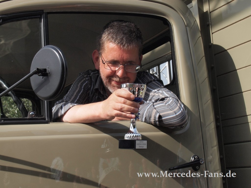 Na also geht doch: Petrus ist ein Mercedes-Fans. Im dritten Jahr strahlten über Hattingen nicht nur die SCHÖNEN STERNE, sondern mit dem polierten Chrom und Blech endlich auch die Sonne. Was dem Mercedes-Treffen einen neuen Besucher-Rekord bescherte: Insgesamt kamen am Wochenende rund 5.100 Besucher und knapp 1.500 Autos zu den SCHÖNEN STERNEN. Hier zeigen wir die Bilder der Pokalträger