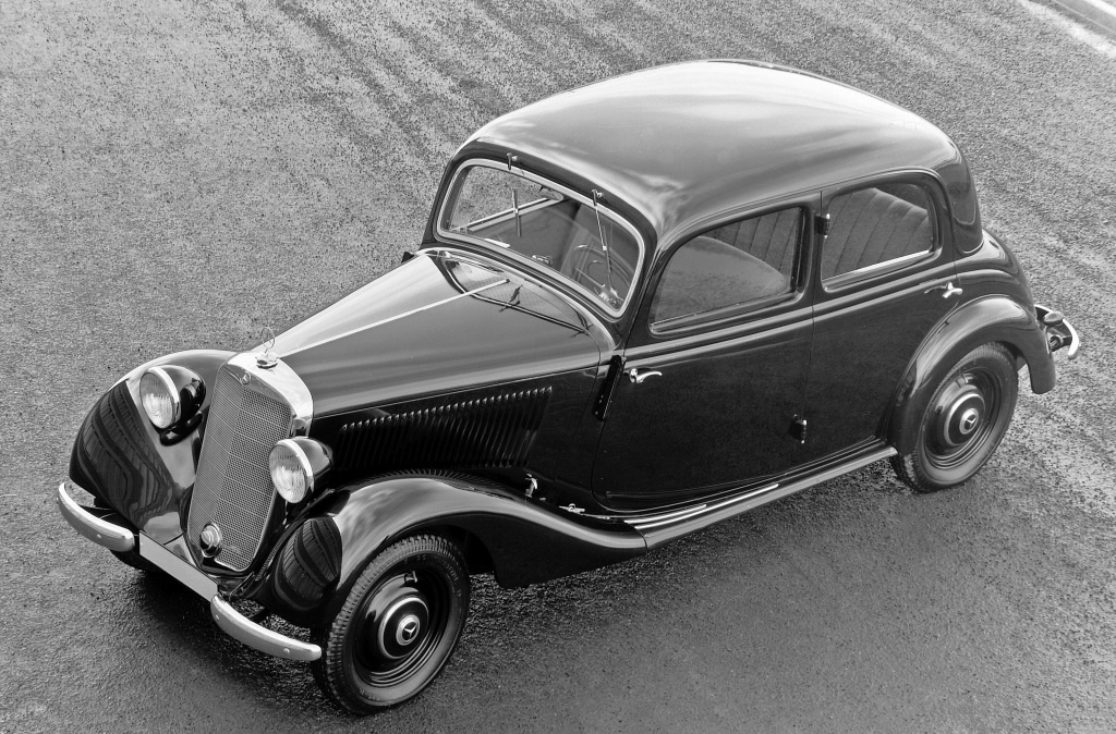 Das Foto zeigt die Limousine mit vier Türen in der ab 1937 gebauten Ausführung. Außerdem entstehen Nutzfahrzeugvarianten auf Basis des 170 V.