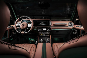 Schon der erste Blick verrät: Hier handelt es sich nicht um einen gewöhnlichen G63. Die Karosserie erstrahlt in einem tiefen Smaragdgrün – inspiriert vom britischen Racing Green – das in einem aufwendigen Verfahren von Hand gebürstet wurde. Das Ergebnis: Eine Oberfläche mit unverwechselbarem Charakter und Tiefe, die das Licht in fein nuancierten Schattierungen reflektiert.
