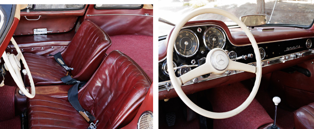 Unter der Haube arbeitet nach wie vor der originale Motor mit übereinstimmender Motornummer, wie es auch die Werksunterlagen von Mercedes-Benz bestätigen. Besonders erwähnenswert: Der SL ist mit seltenen 'NSL'-Komponenten ausgestattet – Hochleistungsbauteilen, die ursprünglich für den Motorsport konzipiert wurden und dem Wagen eine Extraportion Dynamik verleihen.