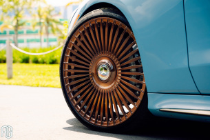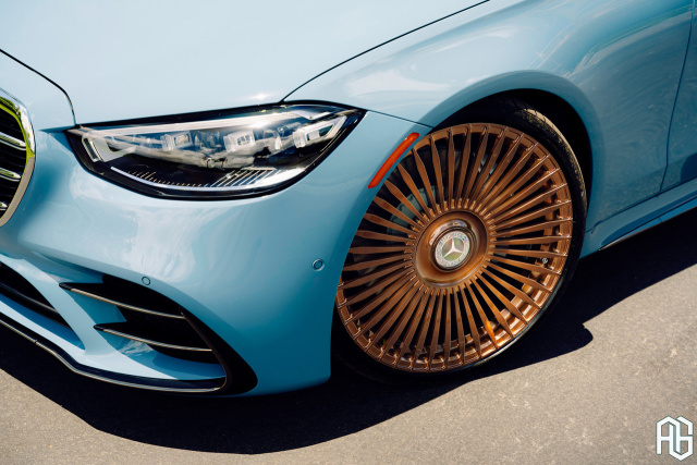 Der stattliche Mercedes steht auf exklusiven 22-Zoll AGL-45 Schmiedefelgen in Brushed Liquid Bronze, die einen markanten Kontrast zur Karosserie bilden und gleichzeitig höchste Eleganz und Individualität ausstrahlen.